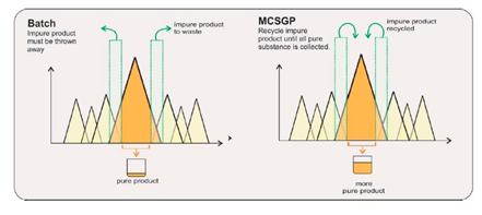?????? MCSGP工藝,可將含有不純組分的產(chǎn)品回收在一個封閉的環(huán)內(nèi),進(jìn)行循環(huán)式的層析操作,從而最大限度地提取純產(chǎn)品,使得收率和純度二者兼得。