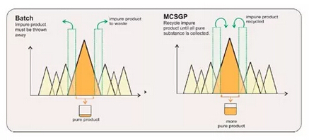 ? ? ? MCSGP工藝,可將含有不純組分的產品回收在一個封閉的環內,進行循環式的層析操作,從而最大限度地提取純產品,使得收率和純度二者兼得。