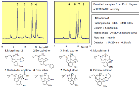 ?????? 富士公司經過對二醇基硅膠的生產工藝和特性的研究,發(fā)現了普通硅膠在正相色譜中沒有的獨特性能。目前為止DIOL Silica已被廣泛用于分離有問題的化合物。