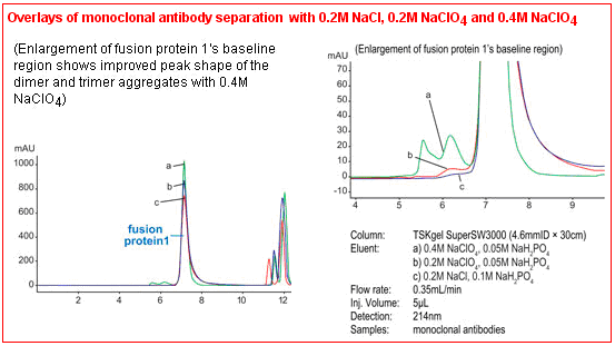 3. TSKgel SuperSW柱有內徑為4μm的顆粒,能實現最高分辨率。窄至4.6mm內徑的柱能在一定量的樣品質量范圍內提高高靈敏度。