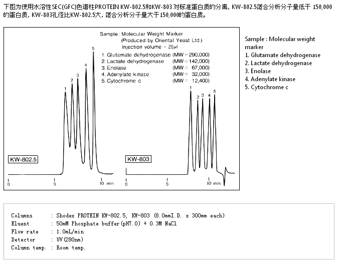 KW-802.5色譜柱是硅膠基質的水溶性SEC色譜柱,適用于蛋白質和酶的分析。