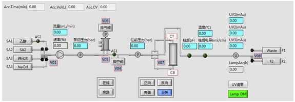 層析系統(tǒng)軟件符合新版GMP規(guī)范,采用圖形化界面、全自動(dòng)操作,簡(jiǎn)明扼要,任何操作及狀態(tài)均可實(shí)時(shí)顯示在主界面狀態(tài)欄中,自動(dòng)化程度高。結(jié)合了大量的容錯(cuò)性設(shè)計(jì),貼合生產(chǎn)實(shí)際,降低了對(duì)研發(fā)人員的技能要求。