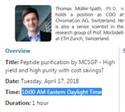 主講人:Thomas Müller-Sp?th, COO of ChromaCon 內(nèi)容:Purification by MCSGP - High yield and High Purity with Cost Savings 時(shí)間:2018年4月17日,星期二,北京時(shí)間22:00(即10:00 AM Eastern Daylight Time) 時(shí)長:1小時(shí)
